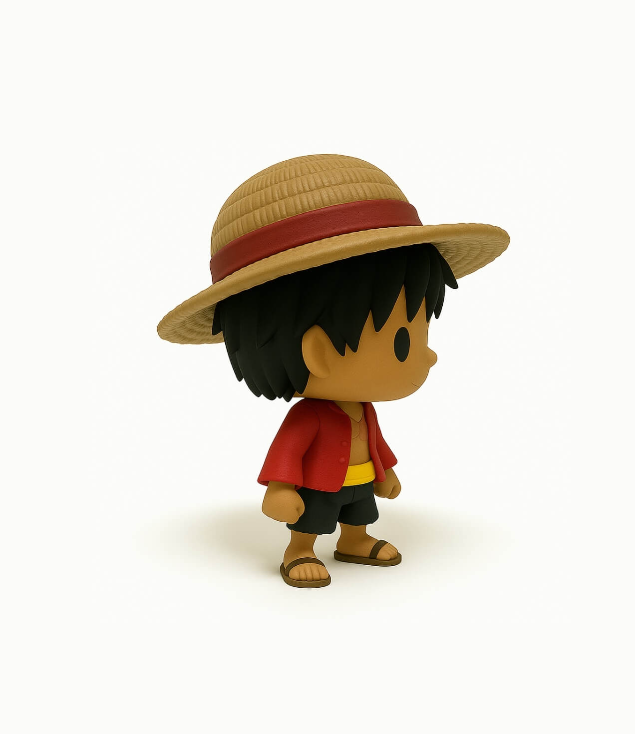 This adventurous figure boasts iconic pirate styling with a wide straw hat, open jacket, and relaxed sandals. With its playful expression and chibi design, it’s a perfect pick for fans of bold journeys and sea-faring anime heroes.